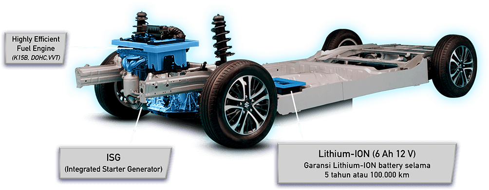 Inovasi Suzuki lewat teknologi pintar Integrated Starter Generator (ISG) dengan baterai Lithium-ION yang menyimpan energi ke baterai Lithium-ION saat kendaraan melambat dan memberikan tambahan daya ke mesin saat akselerasi juga memberikan efisiensi terbaik dengan fitur Engine Auto Stop pada saat kendaraan berhenti. Getaran mesin yang lebih halus dan konsumsi BBM yang semakin irit dan ramah lingkungan.